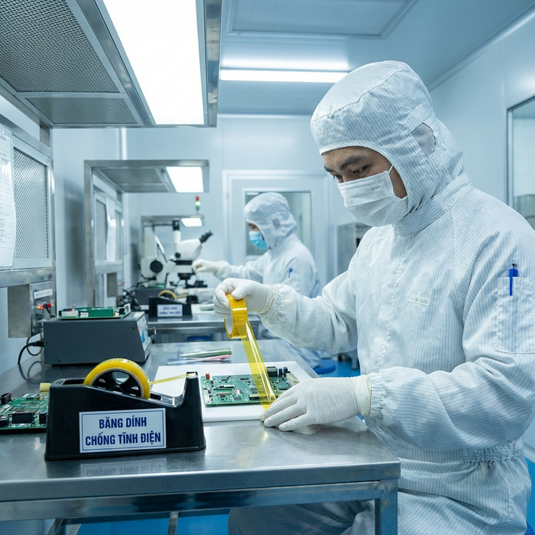 Một cuộn băng dính giá chênh nhau vài chục nghìn đồng có thể khiến cả lô hàng PCB trị giá hàng trăm triệu bị khách hàng trả về. Đây không phải câu chuyện hù dọa, mà là tình huống mình đã chứng kiến ở ít nhất 4 nhà máy FDI tại Bắc Ninh và Hải Phòng trong 10 năm làm việc với vật tư ESD. Vấn đề hầu như đều xuất phát từ việc chọn sai loại băng dính chống tĩnh điện, hoặc tệ hơn, dùng hàng dán nhãn ESD nhưng không đạt chuẩn kỹ thuật. Bài viết này sẽ giúp bạn phân biệt từng dòng băng keo tĩnh điện theo đúng công đoạn, biết cách kiểm tra chất lượng khi nhập hàng, và tránh những cái bẫy mà bộ phận thu mua hay mắc phải khi ép giá nhà cung cấp.
