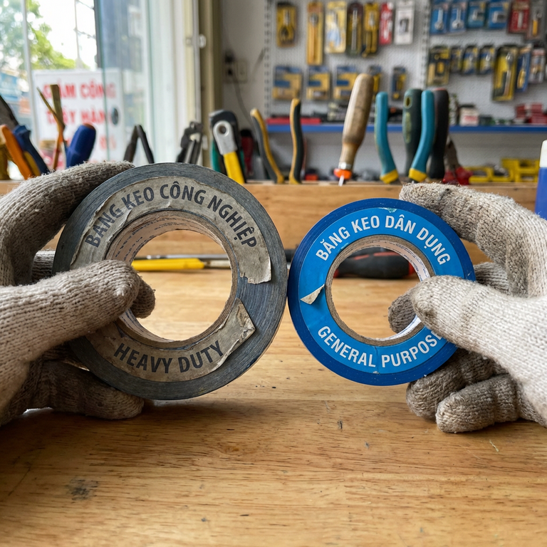 Hơn mười năm cung cấp vật tư cho nhà xưởng và công trình, mình thấy một nghịch lý lặp đi lặp lại. Khách hàng sẵn sàng chi vài chục triệu cho sơn epoxy, vài trăm triệu cho hệ thống điện, nhưng lại chọn băng keo PVC theo giá rẻ nhất trên cuộn. Rồi sau hai tháng, vạch kẻ sàn bong tróc, mối nối điện rò ẩm, viền bếp hở khe, và họ đổ lỗi cho “chất lượng băng keo bây giờ kém”. Bài viết này không bán hàng. Nó là tổng hợp những gì mình đã thấy đúng và sai trong thực tế, để bạn không phải trả học phí thay người khác.