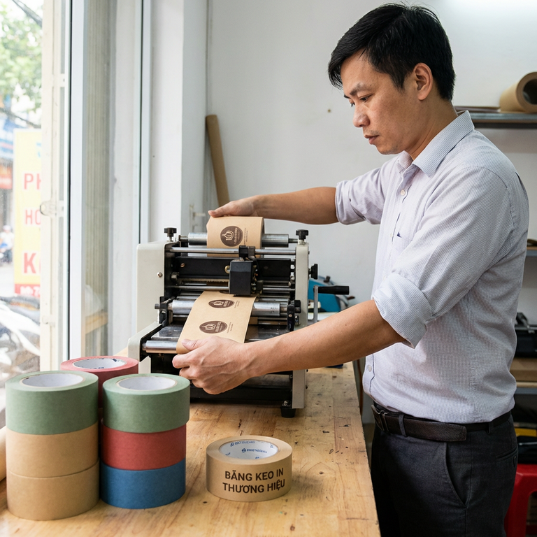Năm ngoái, một thương hiệu thời trang nội địa đến tư vấn vì doanh số online chững lại. Sản phẩm tốt, giá hợp lý, ảnh đẹp, nhưng tỷ lệ mua lại thấp. Sau khi xem quy trình đóng gói, vấn đề rõ ràng: hộp giấy thiết kế đẹp được niêm phong bằng băng keo OPP trong suốt rẻ tiền. Chuyển sang băng keo giấy kraft in logo, không thay đổi gì khác, ba tháng sau tỷ lệ khách chụp ảnh unboxing đăng mạng xã hội tăng gấp đôi và đơn mua lại nhích lên rõ rệt. Cuộn băng dính chênh lệch khoảng 8.000 đồng so với loại cũ. Đó là lý do chi phí bao bì nên nằm trong ngân sách marketing, không phải ngân sách vật tư tiêu hao.