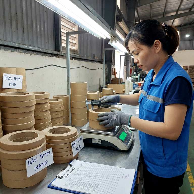 Bạn không cần phòng lab để kiểm hàng. Chỉ cần một cân điện tử độ chính xác 1 gram và một thước kẹp 150mm. Yêu cầu nhà cung cấp gửi 5 cuộn mẫu đối chứng từ đúng lô sẽ giao, cân từng cuộn, ghi lại trọng lượng. Khi hàng về, cân ngẫu nhiên 5 cuộn khác và đối chiếu. Sai lệch dưới 3 phần trăm là chấp nhận được, trên 5 phần trăm là có vấn đề.