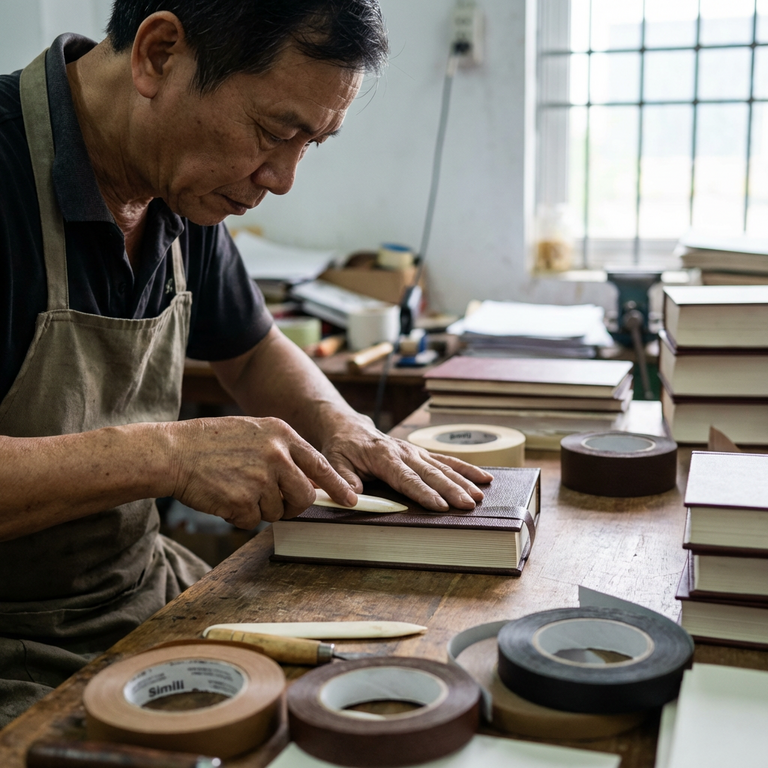Thợ đóng sách lâu năm chuộng loại băng này cho ba việc cụ thể: bọc gáy sách dày, viền bìa hồ sơ lưu trữ và che các đường ghép bìa cứng. Trong hệ vật tư đóng sách chuyên nghiệp, simili tape đứng cùng nhóm với keo dán da simili dạng lỏng và bìa simili tấm, tạo thành bộ ba vật liệu giả da chuyên dụng cho công đoạn hoàn thiện.