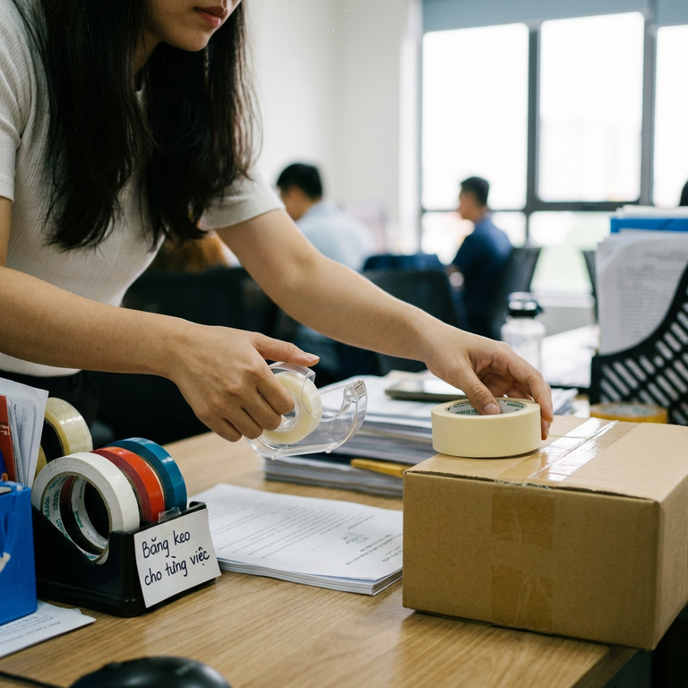 Băng keo màu là mẹo phân loại hồ sơ rất ít văn phòng Việt Nam áp dụng, dù chi phí gần như tương đương băng keo trong. Một văn phòng tôi từng tư vấn dùng keo đỏ cho hợp đồng pháp lý, keo vàng cho tài liệu nhân sự, keo xanh cho kế toán. Nhân viên kho tìm hồ sơ nhanh hơn rõ rệt sau hai tuần.