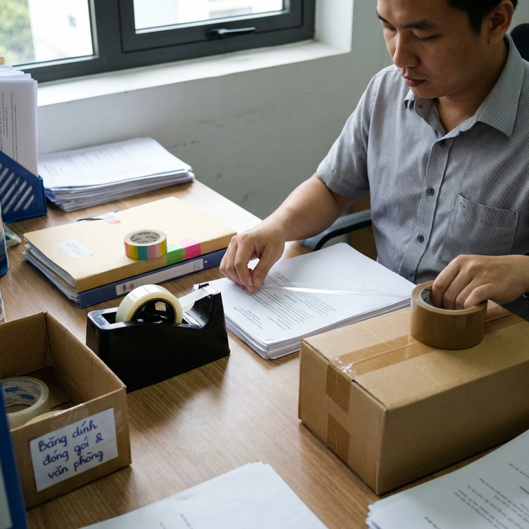 Mỗi tháng, một văn phòng 10 người ngốn hết 20-30 cuộn băng keo mà phần lớn quản trị viên không biết tiền đi đâu. Đây không phải con số bịa, đó là thống kê tôi rút ra sau hơn một thập kỷ cung cấp văn phòng phẩm cho các doanh nghiệp ở Hà Nội và TP.HCM. Vấn đề không nằm ở chỗ băng keo văn phòng đắt, mà ở chỗ chọn sai loại, mua sai quy cách và bảo quản tùy tiện. Bài viết này dành cho ba nhóm người: nhân viên hành chính đang loay hoay với danh sách mua sắm, chủ cửa hàng văn phòng phẩm muốn nhập đúng hàng bán chạy, và chủ shop online cần một cuộn keo không làm bung đơn hàng giữa đường.